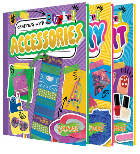 This series encourages readers to express their style through crafting. Whether they are creating their style through accessories, room decor or nails, this series has step by step instructions on crafting and creating their style. Each book focuses on a different style element and includes eight crafts with instructions. The crafts use common items around the house and encourages the reader to reuse things when crafting. Material and tips are included with the step by step instructions as well as factual information pertaining to the craft. A glossary, index, and resources to learn more are included at the back of the book.